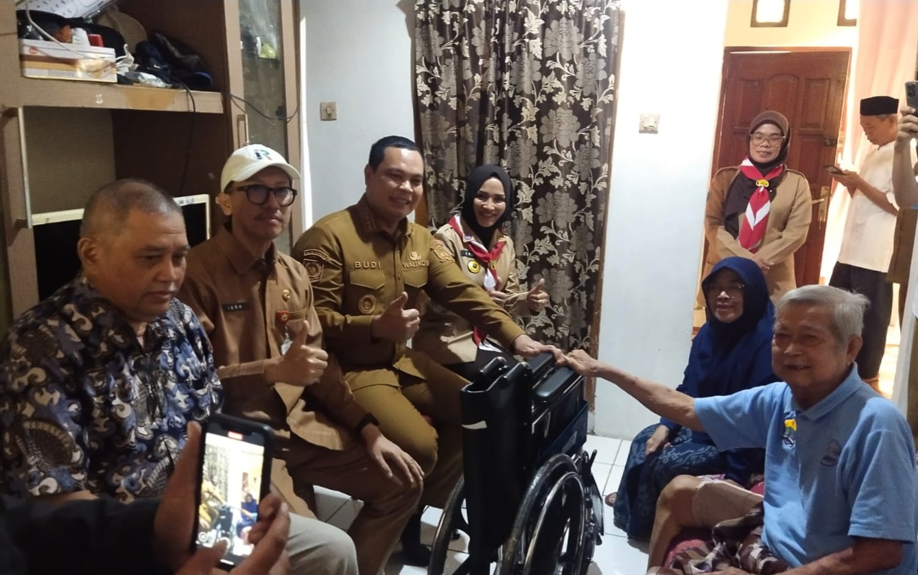 SERANG, BANTENINTENS.CO.ID – Walikota Serang, Budi Rustandi, memberikan bantuan berupa kursi roda dan paket sembako kepada Saudi Sasmita, seorang pegiat seni sekaligus pensiunan guru penilik yang tengah menjalani masa pemulihan akibat patah kaki.